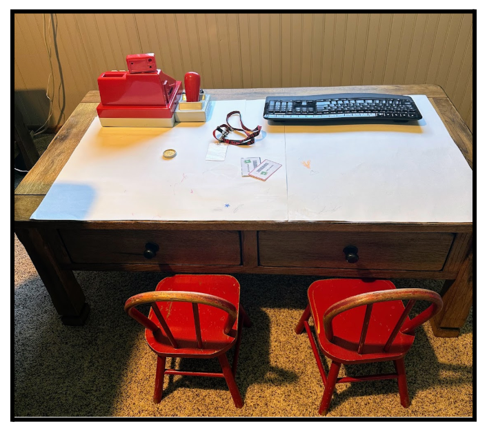 We have a small area behind the couch in our family room where we ended up storing a coffee table while remodeling our kitchen/living room last year. The coffee table just kind of stayed there, making it the perfect set up for a small play center. So far the area has housed a Baby Day Care (2x - did I mention it’s a favorite?), a Donut Shop, an Ice Cream Shop, a Nail Salon, a (Valentine) Card Shop, a Hair Salon, a “House for Trick or Treating” (suggested by our Little D), a Flower Shop and now the area is currently a LIBRARY! Most of the play centers have been suggested by our 4-year-old Little D… Little P, at age two, goes along with anything!