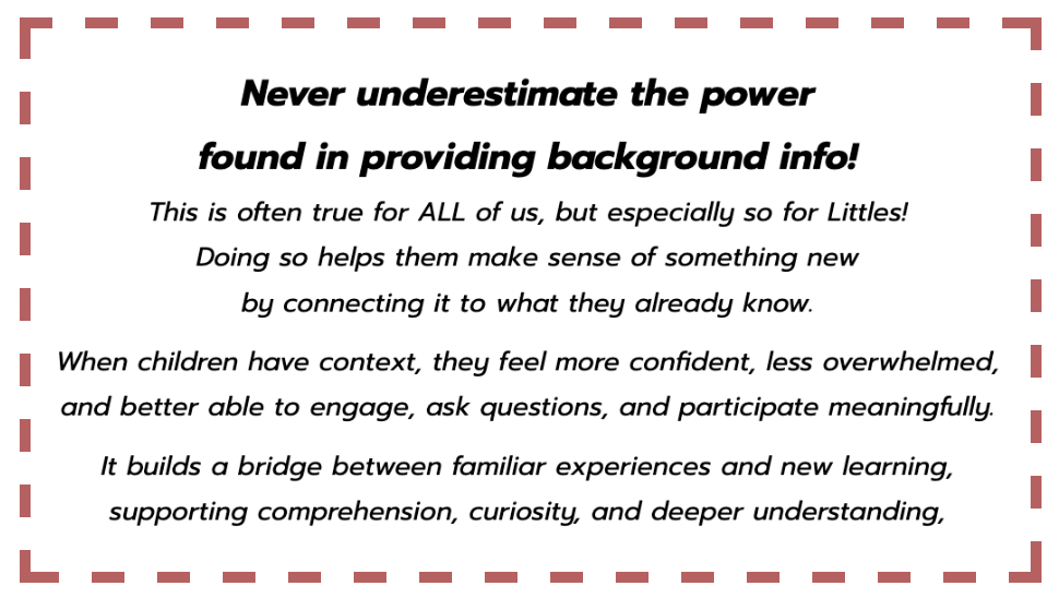We also know that play centers are a quiet powerhouse for social-emotional learning. Through open-ended, child-led play, Littles can naturally practice skills that matter far beyond the activity itself! They learn to problem solve, to cooperate, to consider others’ ideas and to express themselves. In play centers, these skills aren’t taught through instruction — they’re lived, practiced, and felt, which is why they tend to stick.