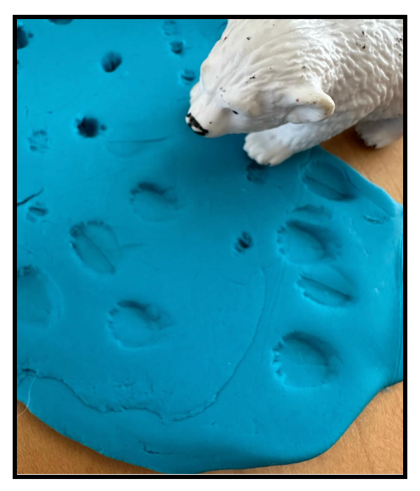 After looking for animal tracks while exploring outside, come indoors and make your own tracks, using Play-Doh and plastic animals!