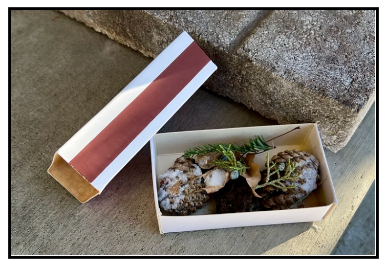 To add another layer of fun, encourage your Littles to collect natural items in the snowy landscape. Items like sticks, pinecones, dried grass, berries or leaves all work great.